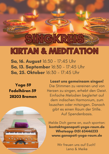 Und noch eine weitere Möglichkeit zum Kirtan singen zusammen zu kommen im schönen "Yoga 59" im Viertel / Fedelhören 59